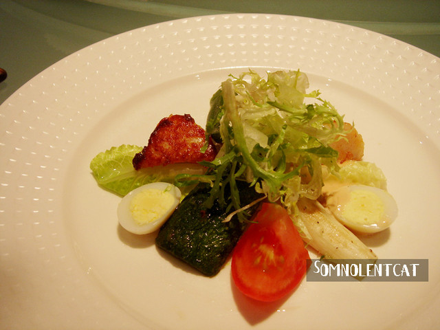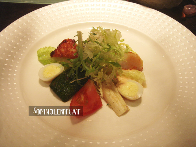 有番茄、茄瓜(茄子+小黃瓜的東西)、生菜、蛋、干貝等...