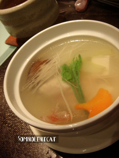 總算到湯品了,湯的部份因為有味增跟清湯,但我選擇的是清湯