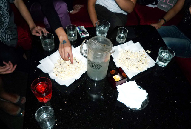 不過值得一提的是飲料還不錯,我們剛坐下就點了一壺的Vodka,還有爆米花^ ^