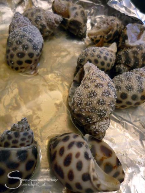 用烤的加鹽巴有原味的美味,不過別忘了吃螺肉要把最後屁股可以捏下來的那塊黑色捏掉唷~