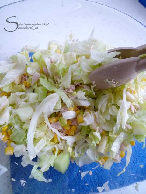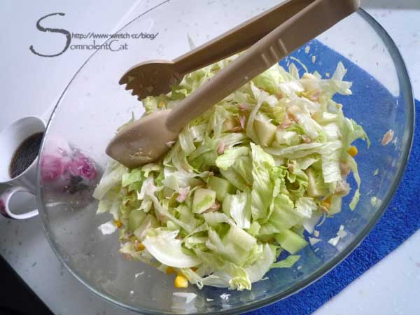 我是使用兩種日式沙拉醬(一種較嗆、一種較酸與鹹)