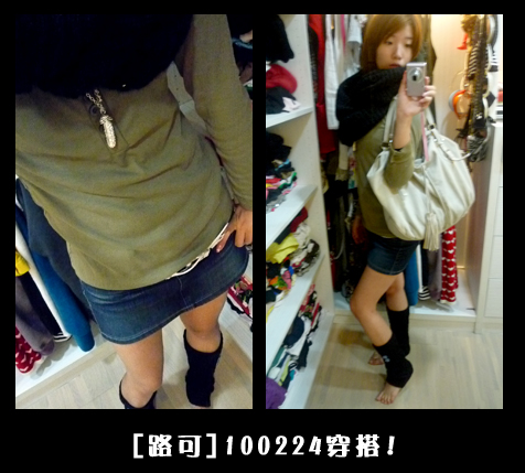 雖然配的是長袖上衣,但牛仔裙的長度很短..