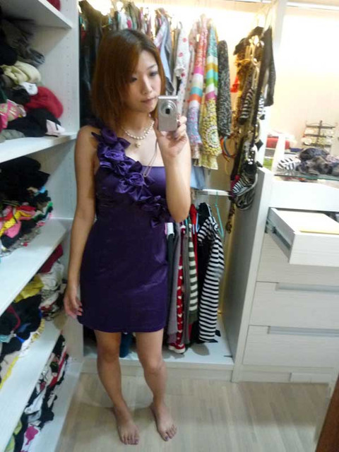 算是短裙的小禮服,斜肩的花朵性感又不失青春!!