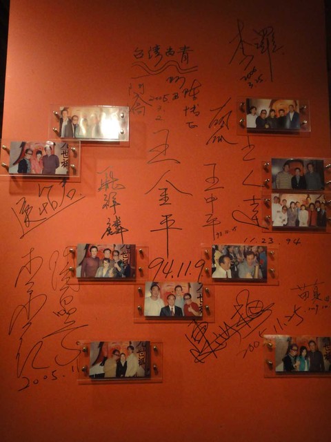 店裡面的紅色牆壁上有好多名人、藝人、政治人物等等的簽名與合照
