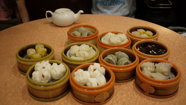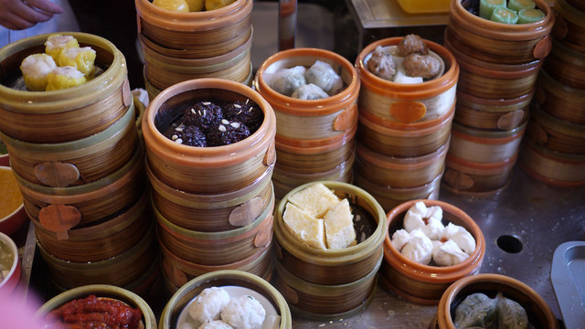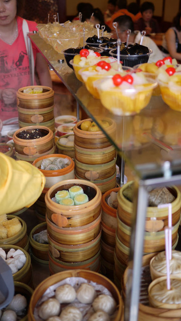 港式飲茶,門外就擺著很多小蒸籠跟甜點