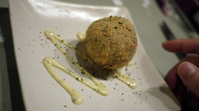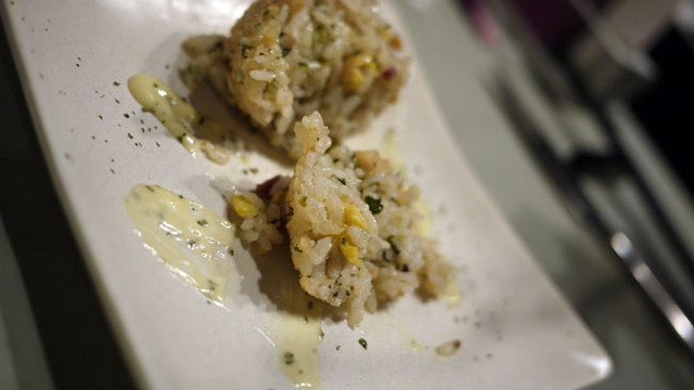 他跟我不一樣,點的是烤飯糰