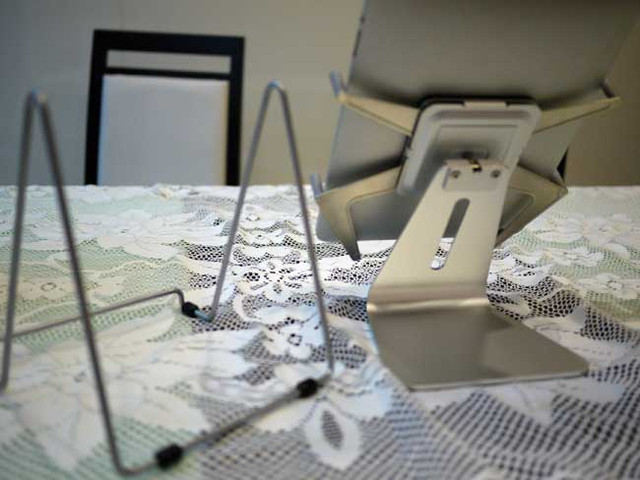 當然他也可以正常放置直的來看書,如果桌子太矮,就把他轉向上一點而不用調整自己的脖子!!
