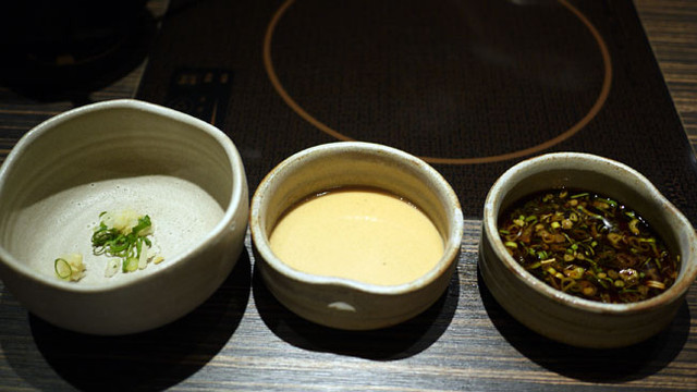 這種日式高檔火鍋吃過幾間,包括最喜歡的Shabu-san....也都是用類似的醬料,加上一個湯碗!!