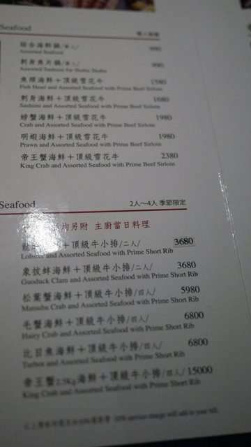 我們點了明蝦 + 雪花牛....(1980+10%)