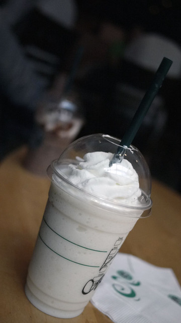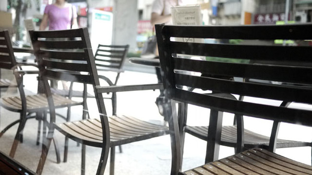 很悠哉的在很熱的早晨坐在星巴克裡面看著窗外車潮