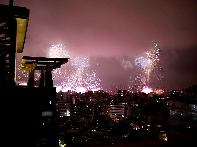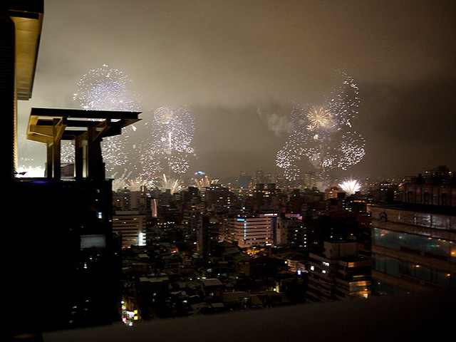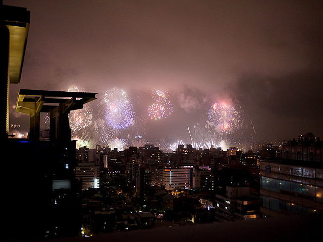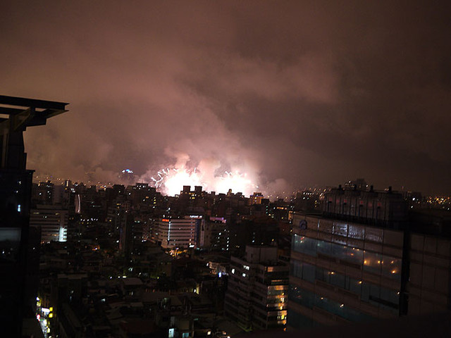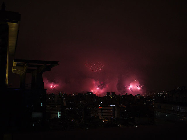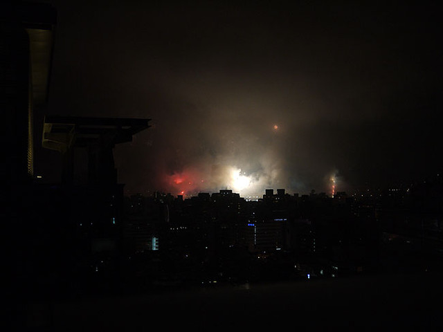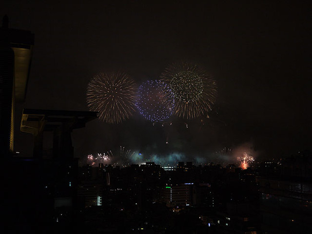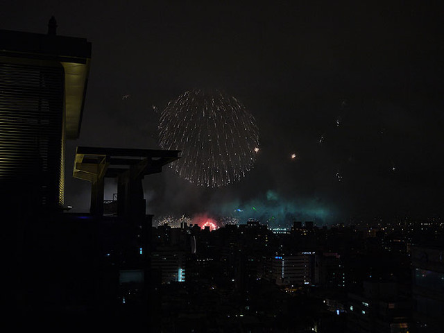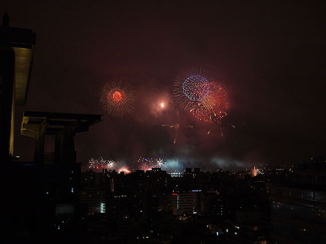 我們還是在吃飯之後趕到媽咪家樓頂去看煙火