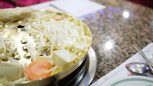 銅板烤肉是這樣,鍋很淺,把肉放上去涮