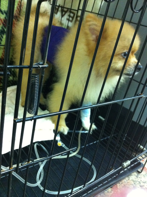 看到我們搖搖尾巴站起來,興奮的差點把尿管給拔掉了 (囧)