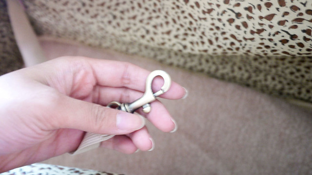 裡面還有一個釦子可以扣住狗狗的項圈,避免包包一打開狗就衝出來很危險~