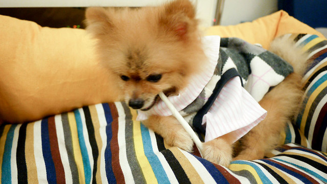 不過穿沒幾天尾巴的小球就掉了,傷腦筋= =