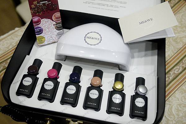 水晶的味道我難以忍受,研究光療好久,最近下手了一組特價又號稱簡單卸除的光療組合「Me & We」