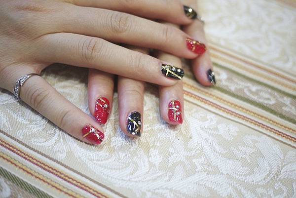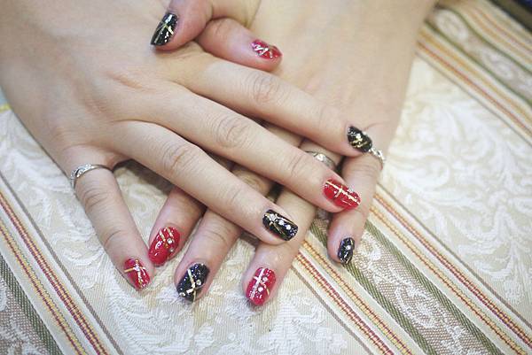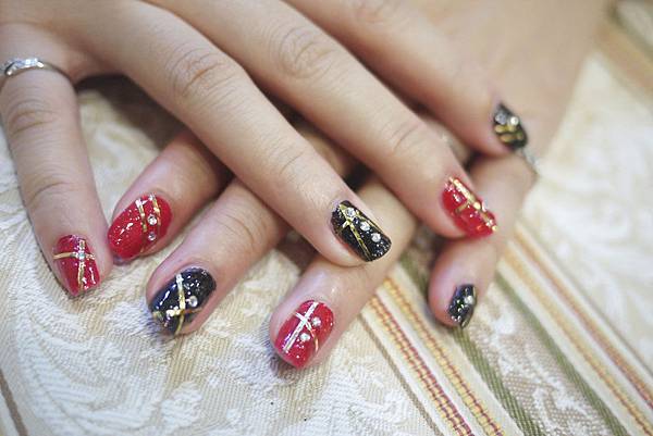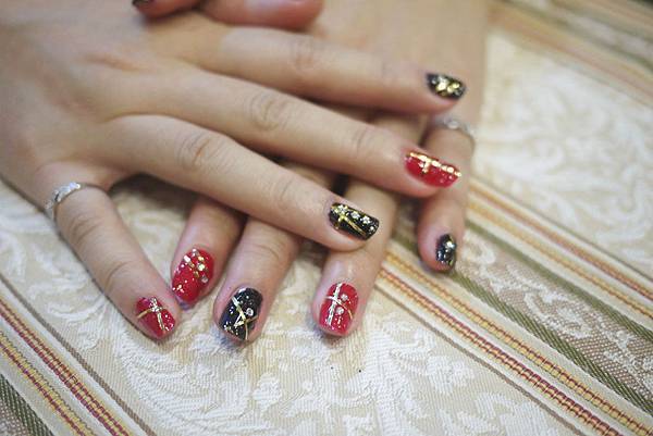 接著使用金屬線隨性的亂貼,邊緣剪掉記得不要超過指緣容易翻起
