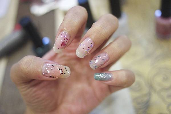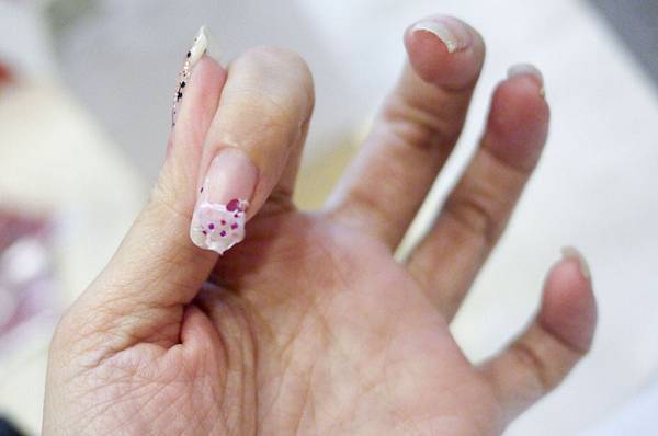 食指是#33,亮片沒有想像的多,底色有細細的粉紅色,很難沾到愛心....