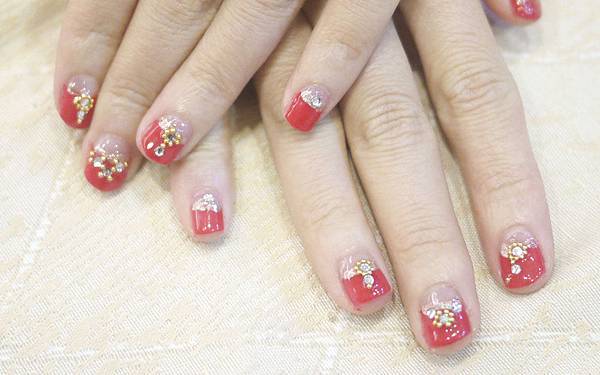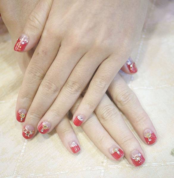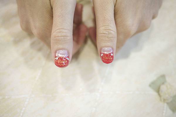 然後用金色細亮片描繪法式邊緣