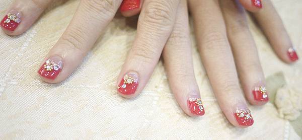 用紅色畫出反法式打底