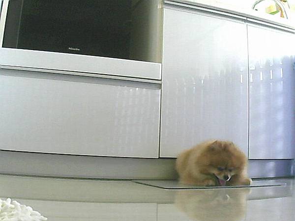 開麥克風跟他說話的時候,他不知哪裡有聲音於是用 "汪汪" 來回應我 XD