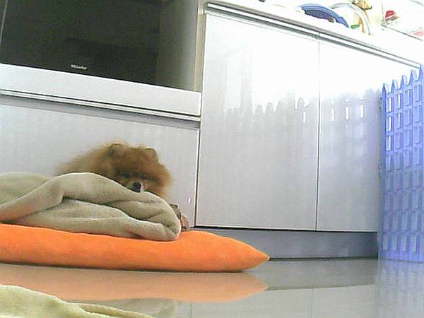 如果磁磚有點冷,就自己上去棉被睡覺吧~