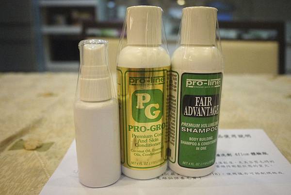 廠商很大方的給了試用品,一瓶洗毛的,一瓶潤絲,一瓶乾洗