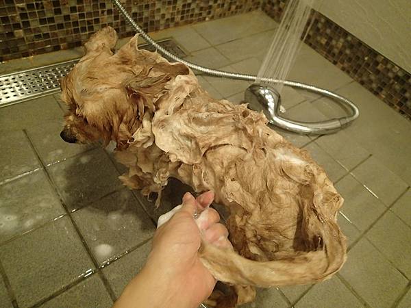 洗澡前要先把大部分的毛梳開,MIGI每天睡前都有梳毛所以梳開很容易