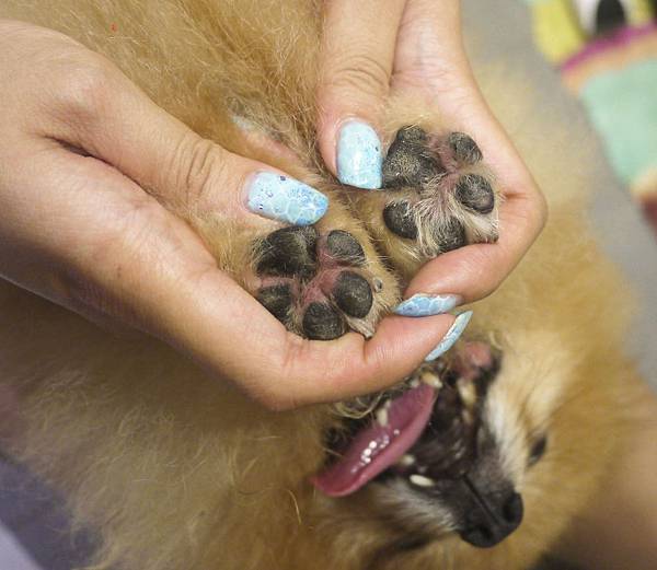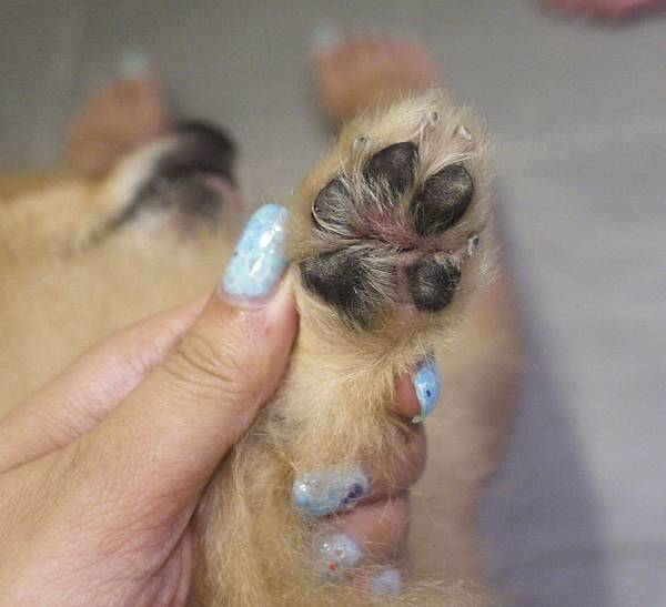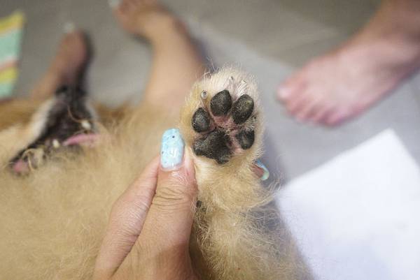 可以看到他的腳毛四散已經都長到肉上了,很容易滑倒的!!!!