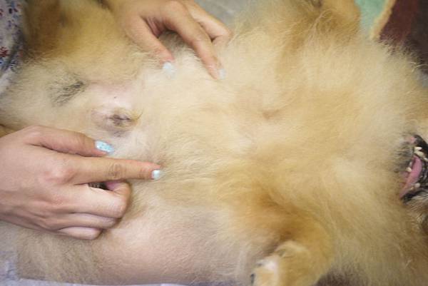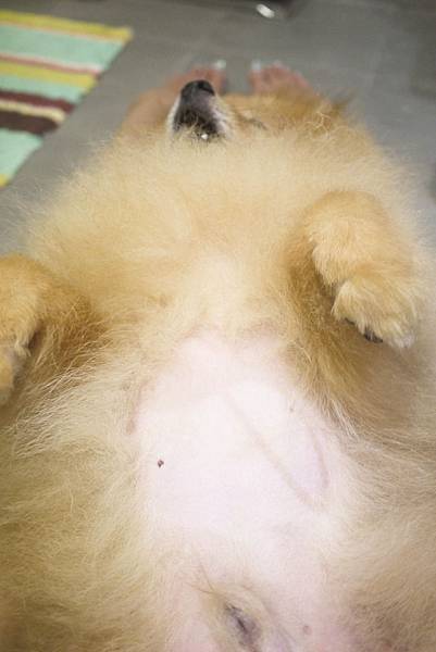 夏天他們要趴涼墊但是都是毛的話也趴不了所以要把肚子給剃掉讓他涼快~
