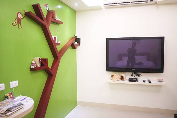 一進門就是右邊的大電視與正前方的一抹綠色牆壁