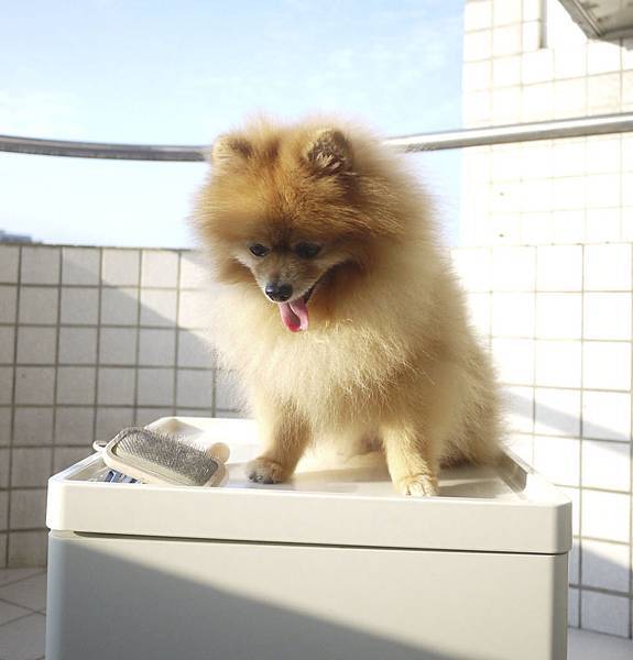 因為在家裡剪我很怕毛飛的到處都是所以我把櫃子拖到陽台把MIGI抱上去