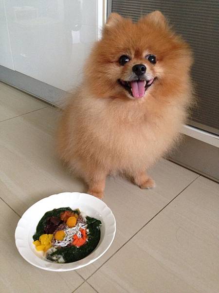 晚餐很乖的吃完,除此之外也分了他一根熬湯的骨頭給他咬五分鐘,大便正常,但顏色還是有點偏深