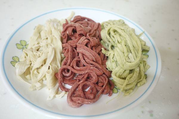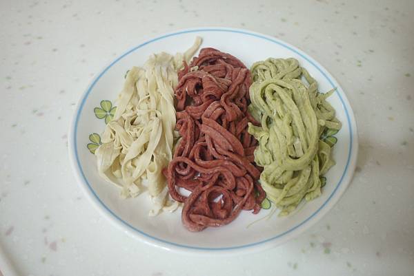 麵麵準備好以後各剪一點點拿去煮熟後撈起來放碗裡面備用