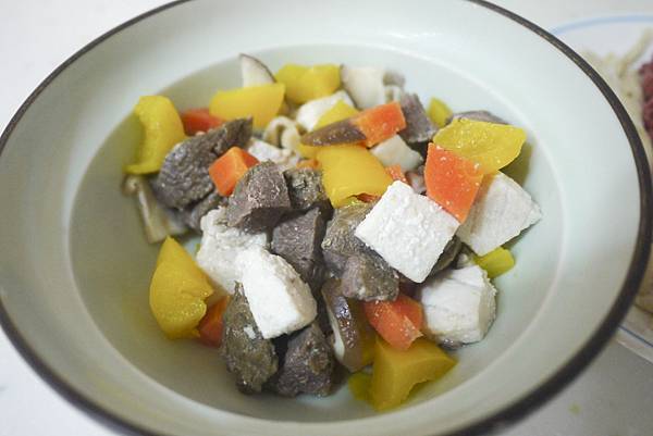 裡面有 甜椒 / 紅蘿蔔 / 牛肉 / 旗魚 / 木耳 / 香菇