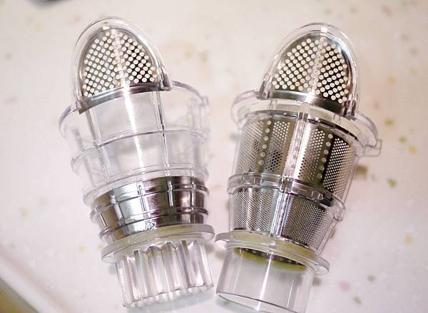 總共有兩個濾網,左邊是一般水果,右邊是給軟的水果用的