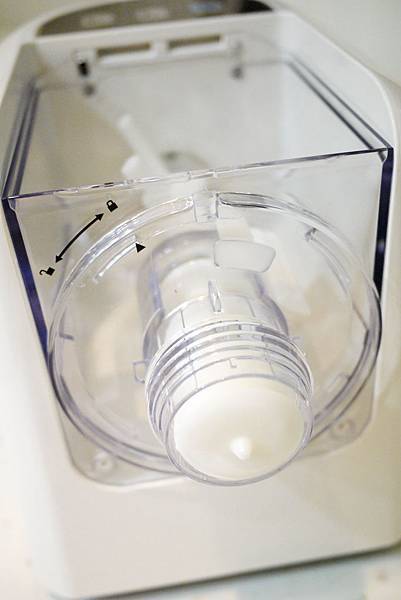 [上方蓋子卡上去以後即可固定透明麵粉盆,就拉不出來了]