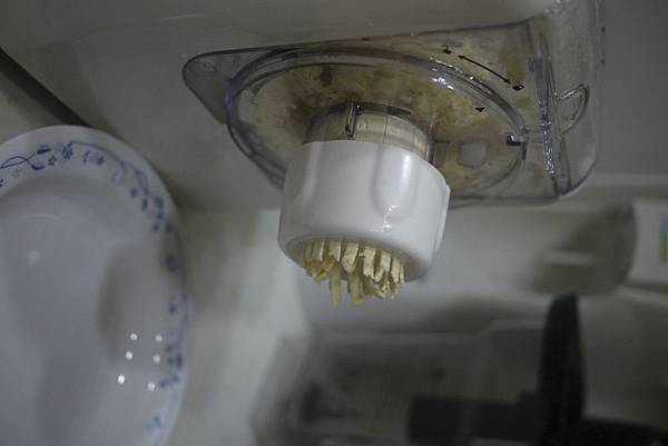 麵條製作完成後直接將盆子拆下來放到旁邊角落去