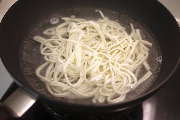 當水滾了的時候,麵條也已經出了一人份的份量了,剛好拿去煮