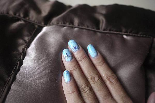 最後,再拿出Dulces Nail (DN)黏鑽膠黏上碎鑽、飾品再上封層就收工囉!!!!