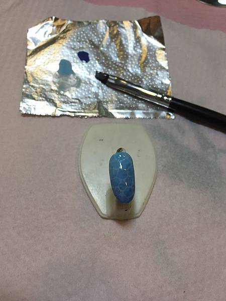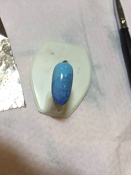 接著薄刷一層202後照燈,讓整個指甲有水藍色的底色