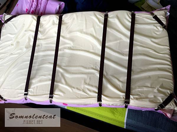 裝好之後再把他們五花大綁,避免被妮妮妹翻起來咬