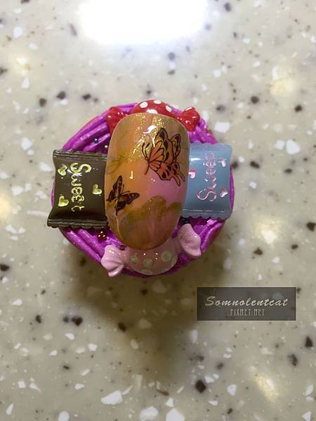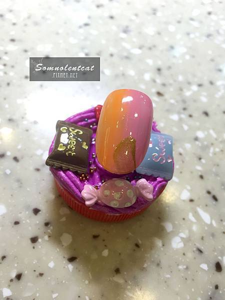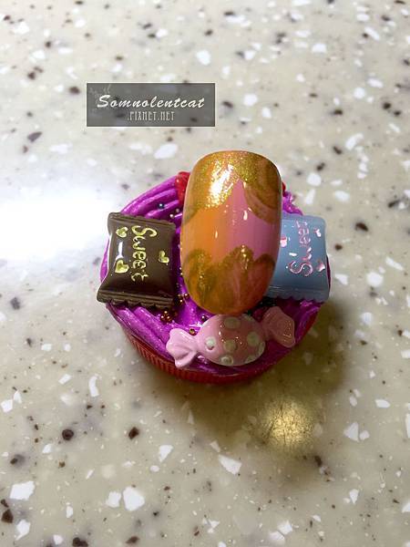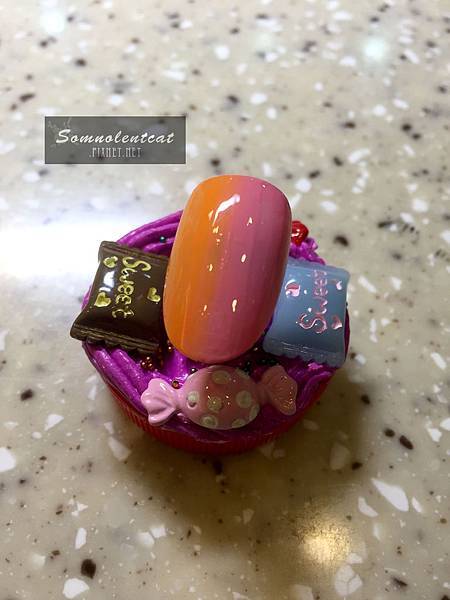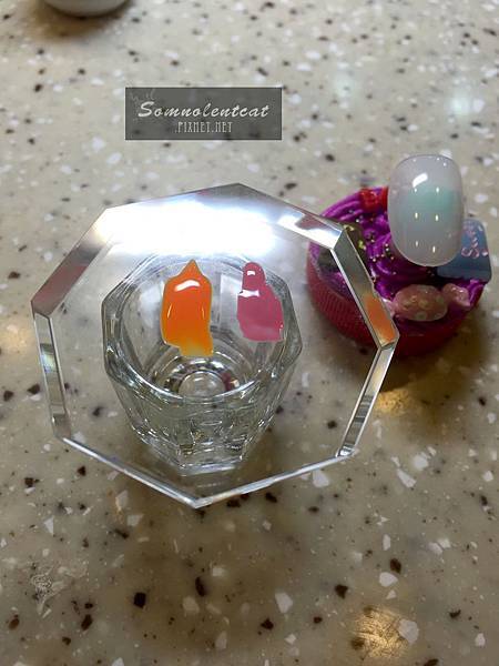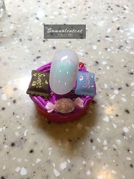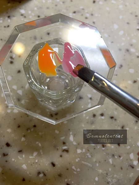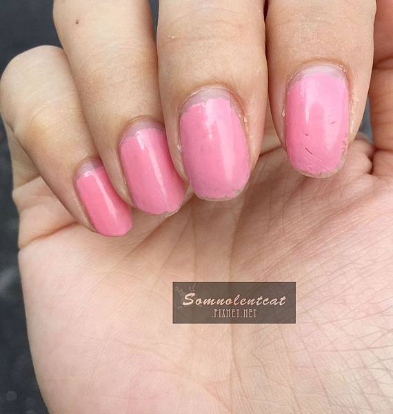 由於使用筆刷所以顏色比平時甲油刷飽滿的更淡一些
