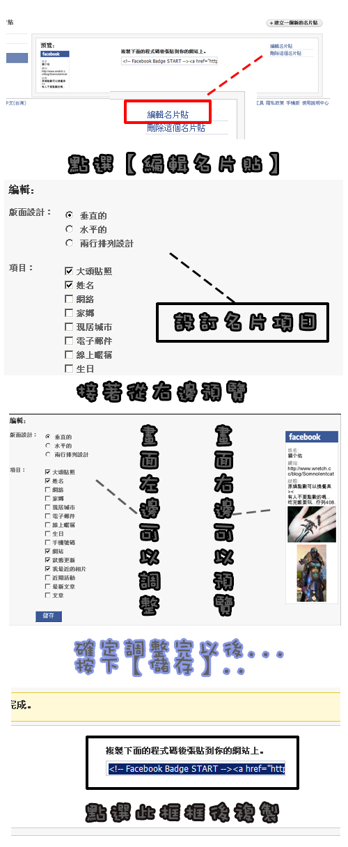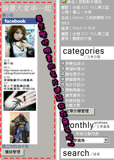 那要如何將「FACEBOOK 的名片貼張貼到 無名小站」勒?!